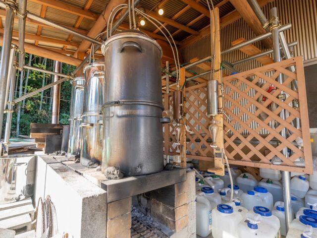 蒸留委託先である「高知FORESTVISION」様では、一切の原動力を利用せず薪を使ったカーボンニュートラルでの水蒸気蒸留法にて、丁寧に精油を抽出しております。